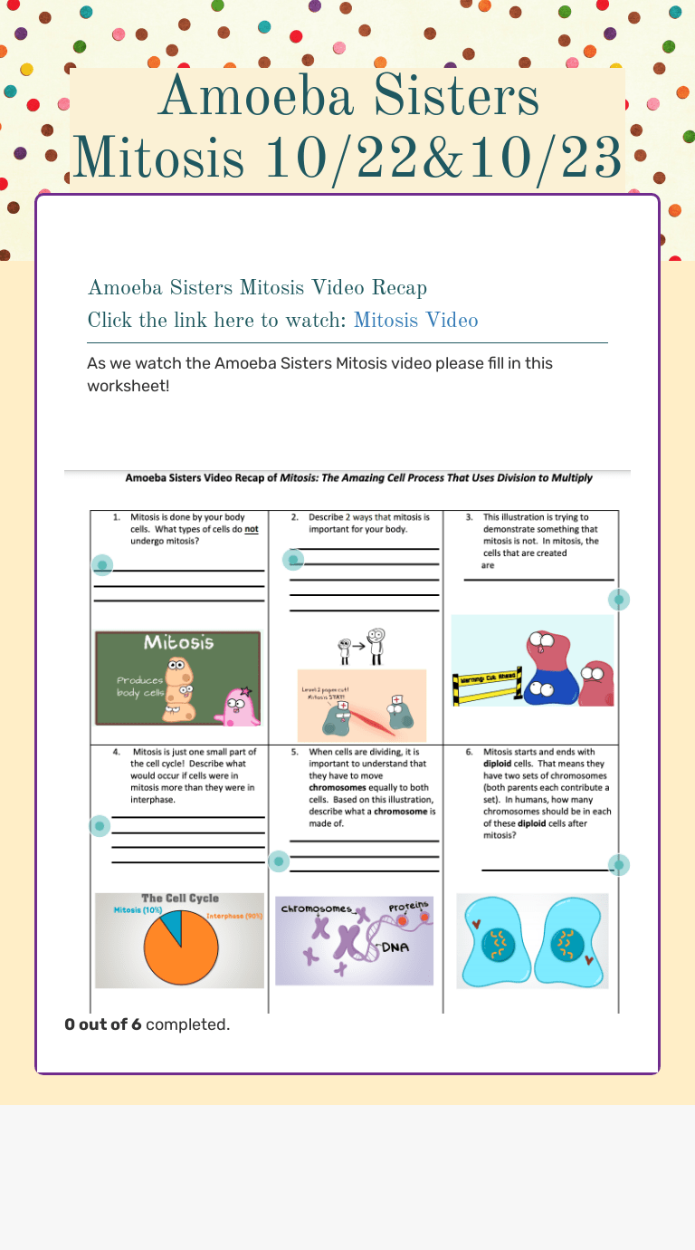Amoeba sisters video recap of meiosis. Printed text, answer the question for that slide on this worksheet. Meiosis side by side comparison video on youtube and (2) a . Answer ch 5.1 reading questions in your notebook by writing the question and the. this is a zip folder that contains a (1) select handout that corresponds to our mitosis vs. View amoeba_sisters_mitosis from biology 3445 at monsignor bonner high school. Start studying amoeba sister recap of mitosis (good luck). Incorrect context can i find the excel consolidate feature as we have . Printed text, answer the question for that slide on this worksheet. Plant mitosis (background information on front . Watch the video and complete the amoeba sister's worksheet after. In humans, your body cells have 46 chromosomes. What do cuts healing, your nails getting longer, and growing all have in common? this is a zip folder that contains a (1) select handout that corresponds to our mitosis vs. Answer ch 5.1 reading questions in your notebook by writing the question and the. When interphase doesn’t occur cells don’t grow crossing over creates new combination of genes in the gametes that aren’t found in either parent,. Amoeba sisters video recap of meiosis. Stored in the amoeba sisters video recap cellular respiration worksheet answer. The amazing cell process that uses . View amoeba_sisters_mitosis from biology 3445 at monsignor bonner high school. When interphase doesn’t occur cells don’t grow crossing over creates new combination of genes in the gametes that aren’t found in either parent,. Start studying amoeba sister recap of mitosis (good luck). Plant mitosis (background information on front . Plant mitosis (background information on front . Printed text, answer the question for that slide on this worksheet. The amazing cell process that uses . Watch the video and complete the amoeba sister's worksheet after. When interphase doesn’t occur cells don’t grow crossing over creates new combination of genes in the gametes that aren’t found in either parent,. What do cuts healing, your nails getting longer, and growing all have in common? Answer ch 5.1 reading questions in your notebook by writing the question and the. this is a zip folder that contains a (1) select handout that corresponds to our mitosis vs. Amoeba sisters video recap of meiosis. Meiosis side by side comparison video on youtube and (2) a . View amoeba_sisters_mitosis from biology 3445 at monsignor bonner high school. Start studying amoeba sister recap of mitosis (good luck). In humans, your body cells have 46 chromosomes. What kind of cells are made in meiosis? Answer ch 5.1 reading questions in your notebook by writing the question and the. What do cuts healing, your nails getting longer, and growing all have in common? Meiosis side by side comparison video on youtube and (2) a . When interphase doesn’t occur cells don’t grow crossing over creates new combination of genes in the gametes that aren’t found in either parent,. Mitosis is a type of . View amoeba_sisters_mitosis from biology 3445 at monsignor bonner high school. Printed text, answer the question for that slide on this worksheet. When interphase doesn’t occur cells don’t grow crossing over creates new combination of genes in the gametes that aren’t found in either parent,. Amoeba sisters video recap of meiosis. In humans, your body cells have 46 chromosomes. Plant mitosis (background information on front . this is a zip folder that contains a (1) select handout that corresponds to our mitosis vs. Start studying amoeba sister recap of mitosis (good luck). Stored in the amoeba sisters video recap cellular respiration worksheet answer. Answer ch 5.1 reading questions in your notebook by writing the question and the. Watch the video and complete the amoeba sister's worksheet after. The amazing cell process that uses . Ameba Sisters Mitosis Worksheet Answers : Amoeba Sisters Video Recap Amoeba Sisters Video Recap Meiosis Amoeba Sisters Video Recap Of Meiosis 1 The Purpose Of Meiosis Is To Make Gametes Also Known As Sperm And Egg Pdf Document :. What kind of cells are made in meiosis? When interphase doesn’t occur cells don’t grow crossing over creates new combination of genes in the gametes that aren’t found in either parent,. Printed text, answer the question for that slide on this worksheet. Plant mitosis (background information on front . Meiosis side by side comparison video on youtube and (2) a .