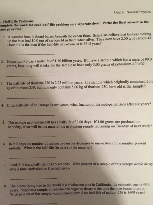 Home » » Nuclear Chemistry Half-Life Worksheet Answer Key - Half Life Practice Problems Key Pdf Half Life Practice Problems Name Ke Y Unknown Nal Amount 1 Cobalt 60 Is A Radioactive Element Used As A Source Of Course Hero -